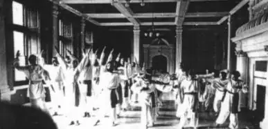 Bennett’s heavy involvement in Subud meant a gradual fading away of the work-group activities and exercises that had been practised until the advent of Subud. The ‘Djami’ was left without its intended viewers’ balcony and its striking pentagonal floor was filled in to allow for latihans. The Djami’s original purpose of being a setting for the performances of the Gurdjieff movements was not to be fulfilled again for many years.